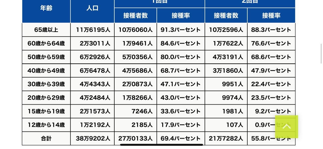 60歳以上の方々はほぼ市の接種会場でやっていて50歳以下が50パーセント以下なのは職域や学校でやっているのもあると思います。