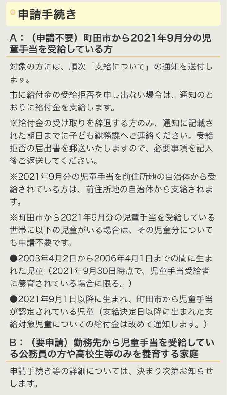 昨日16日に町田市の子育て世代への臨時特別給付金について色々と更新されました。