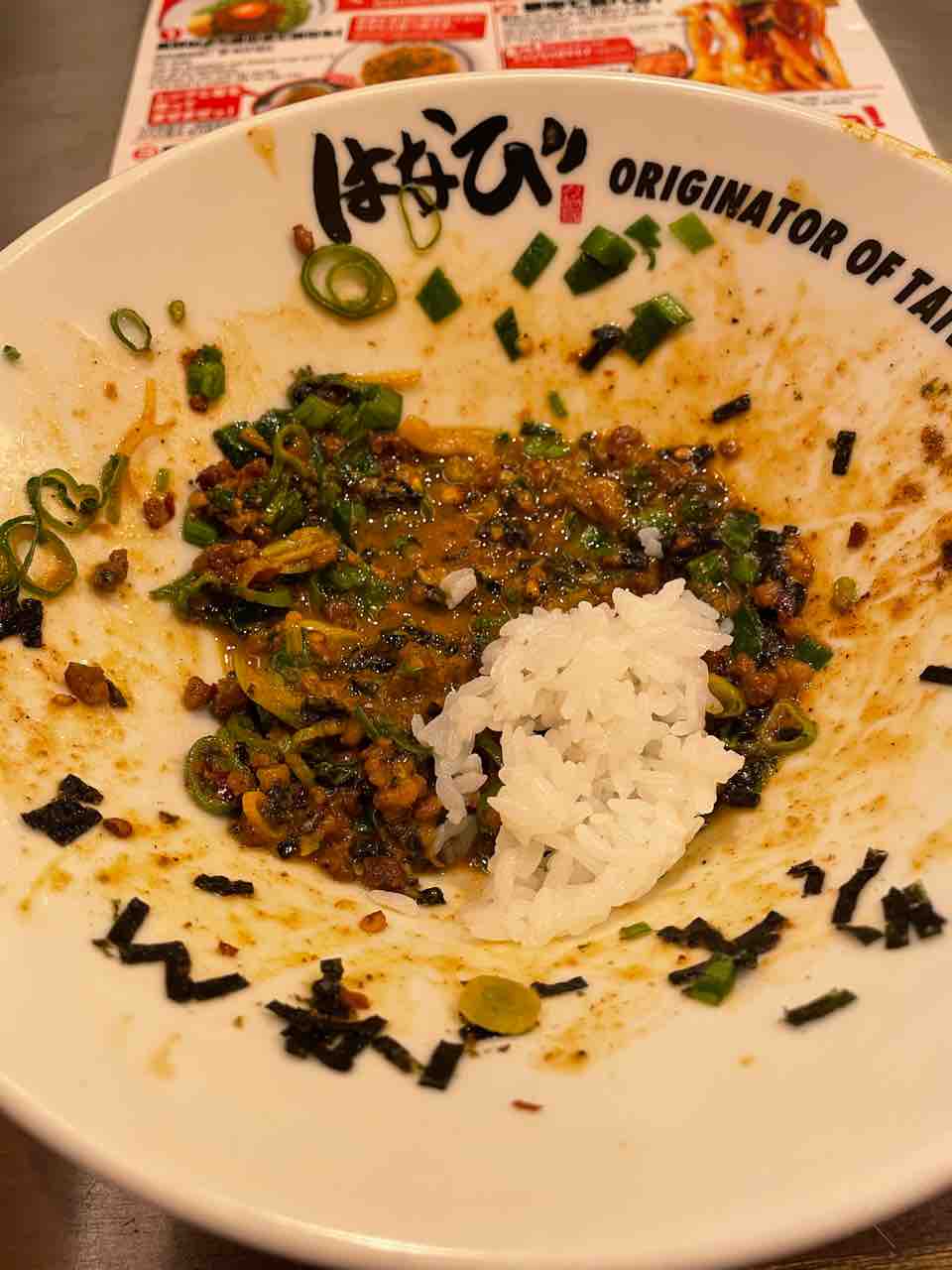 うまーい!米と合うわ〜辛さが米の甘さも加わり麺と大分違う味がする!こりゃあたまらん!