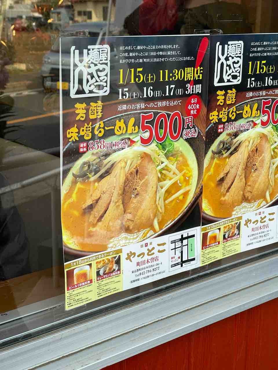 オープンから3日間、芳醇味噌ラーメン500円でやっておりました。