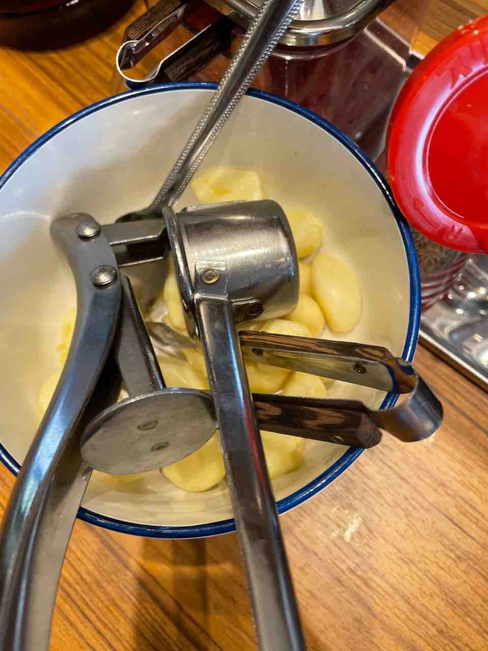 自分で潰すニンニクは風味そして味が強くて好き!