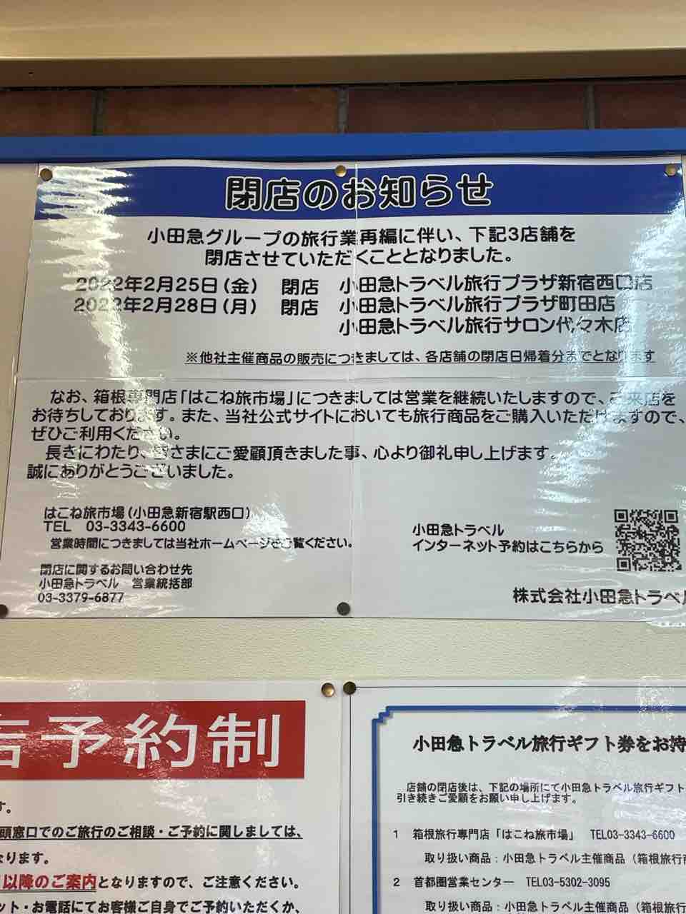 ただし新宿西口の箱根旅行専門の「はこね旅市場」は残ります。
