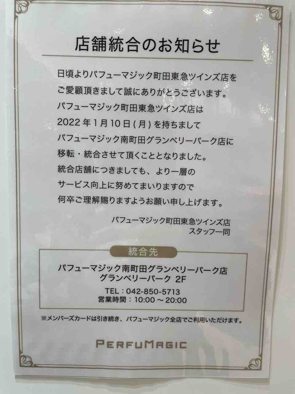 東京にあるパフューマジックはこれで南町田だけになってしまいました。